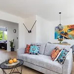 Con un balcón y una zona de estar, la propiedad está equipada con un sofá, y comodidades modernas como TV y TV de pantalla plana con canales vía satélite. Junto con las vistas al jardín, los huéspedes también apreciarán ventanas insonorizadas, que realzan la experiencia global. Este apartamento consta de 2 dormitorios. El establecimiento dispone de 1 baño con ducha adaptada, un inodoro separado de la ducha y una ducha. Además, encontrarás secadores de pelo y toallas.
